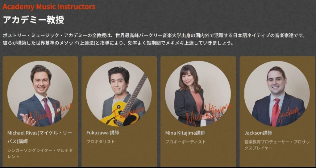 ボストリーミュージックアカデミーの講師陣は、バークリー音楽大学出身の、本来なら予約が取れないレベルの方々です。