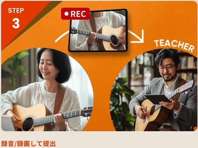 • スマホで自分の演奏を撮影して送ると、プロの講師から一人ひとりに合わせた具体的なアドバイス(フィードバック)がもらえる(プランによる)