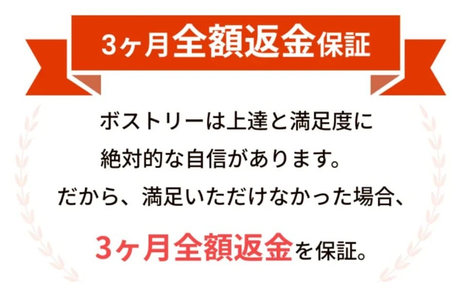 もし「自分はおすすめできない人に当てはまるかも…」と不安になったなら、ボストリー独自の3か月全額返金保証制度を判断基準にしてみてください。