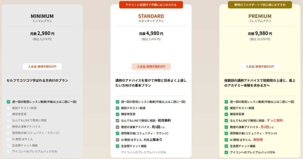 まずは、あなたが挑戦したい楽器のコースがあるか、公式サイトでラインナップを確認してみてください。
