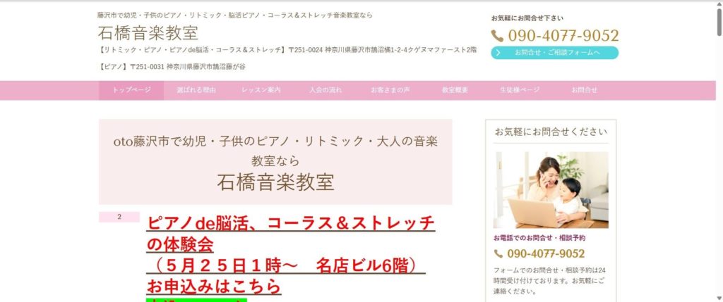 - エリア別(藤沢駅/鵠沼/辻堂)に教室を分類して紹介
