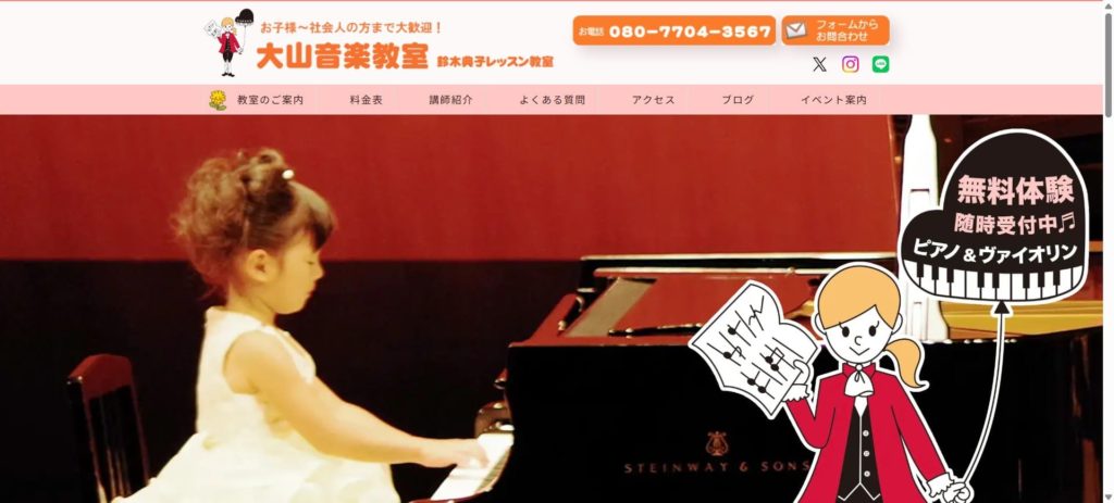 - 大山音楽教室:低価格で柔軟な受講スタイル、家庭的な雰囲気を重視する方に最適