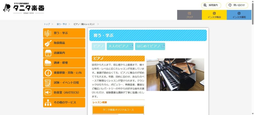 | ヤマハ特約楽器店タニタ楽器 | 5,060円〜 | 要確認 | — | 要確認 | 無料 | 川口駅バス6分 | コースにより変動 |