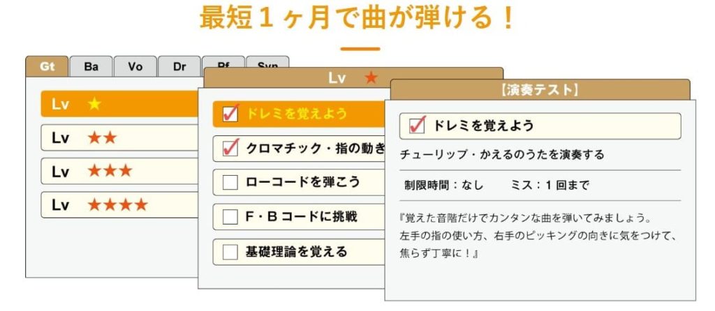 自分のペースで練習したい人も、短期間で成長したい人も、ストレスなく上達できる仕組みがあるので、音楽がより身近で、より楽しいものへと変わっていきます。