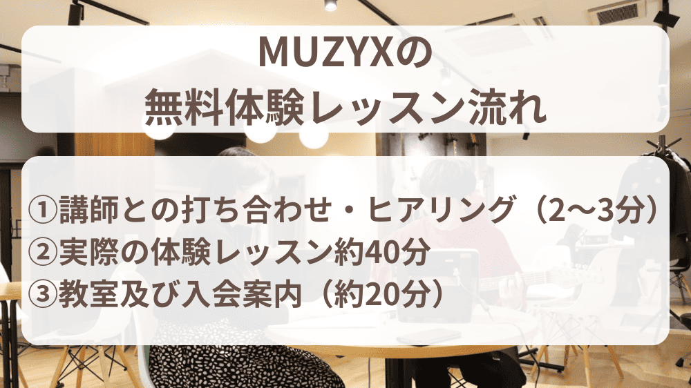 MUZYXの体験レッスンは、以下のような構成で進行します。