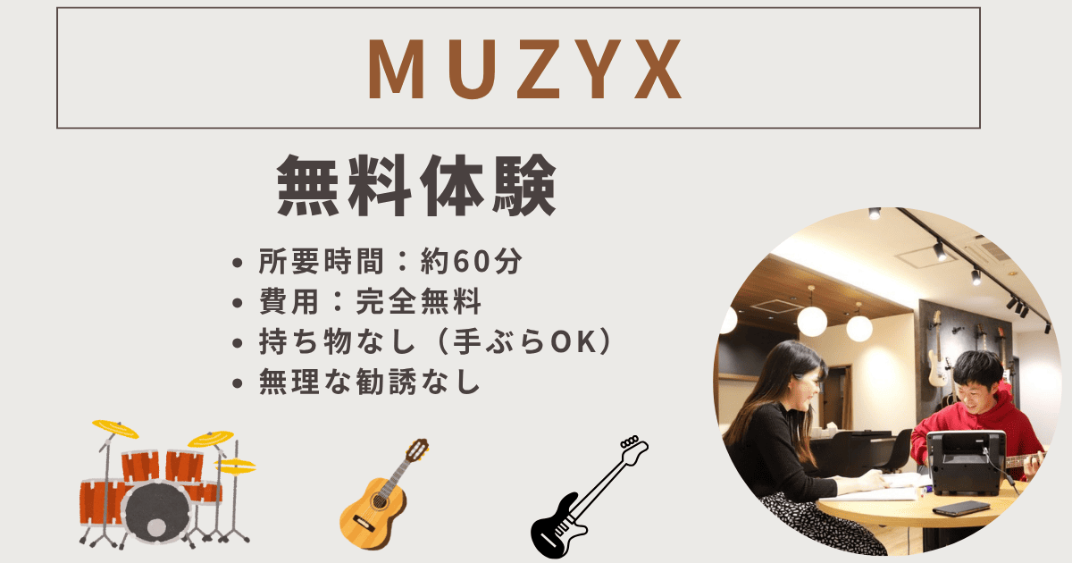 MUZYXの無料体験には、音楽を始めたいと思いながら一歩踏み出せずにいる人の背中を、やさしく押してくれる魅力があります。