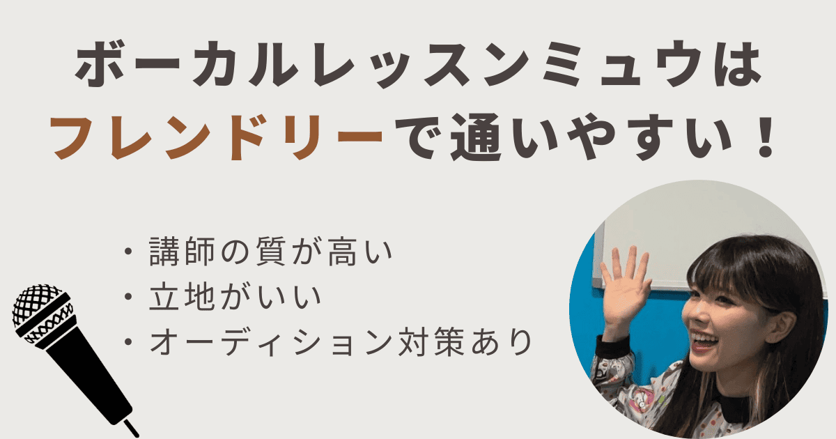ボーカルレッスンミュウの評判はフレンドリーで通いやすい!