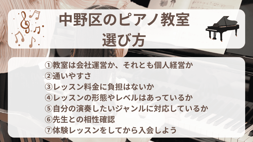 教室探しプロのシマエナガ中野区でピアノ教室を選ぶ際にチェックすべき7つのポイントを詳しく解説します。