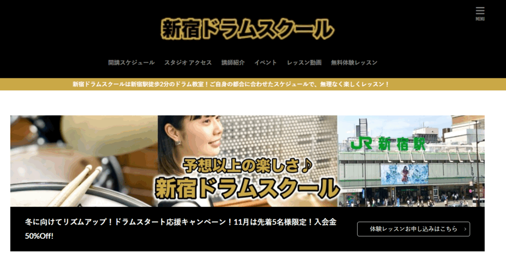 | 店舗名(公式サイトリンク) | 新宿ドラムスクール |