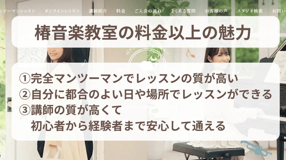 • 椿音楽教室の料金プランと、他教室との違いがわかる